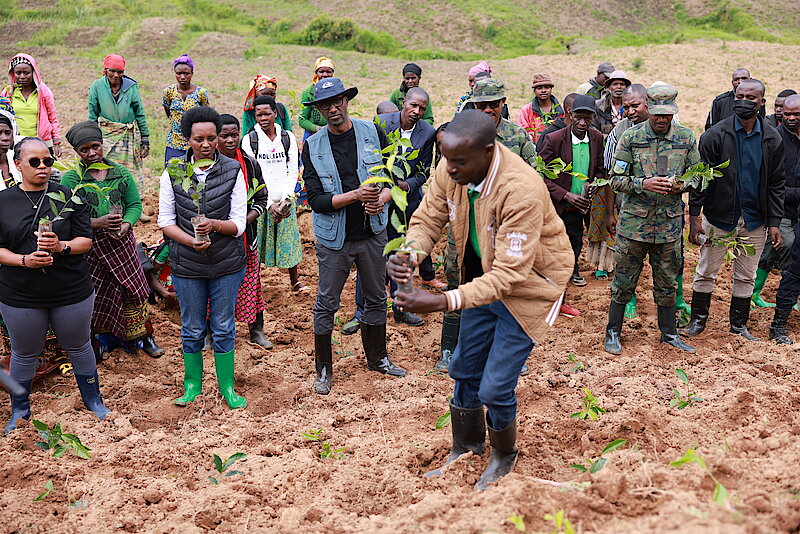 The launch also marked the start of planting 2,902,145 coffee seedlings across six districts—Nyamasheke, Karongi, Rusizi, Nyamagabe, Huye, and Nyaruguru—as part of the national program to replace old coffee trees (over 30 years old). This year, coffee replacement will cover 1,043 hectares, with a long-term target of planting 9 million seedlings on 3,050 hectares by 2029, along with the rehabilitation of an additional 1,082 hectares of old coffee trees.