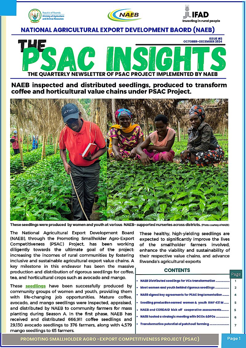 In this issue, we highlight key milestones and achievements within the PSAC Project, from successful seedling production and distribution aimed at transforming targeted value chains and the lives of smallholder farmers, to strategic partnerships designed to accelerate the project's implementation. The newsletter also features inspiring stories from women and youth who are already experiencing the early impacts of this life-changing initiative, with heartfelt video testimonies expressing their aspirations and gratitude.